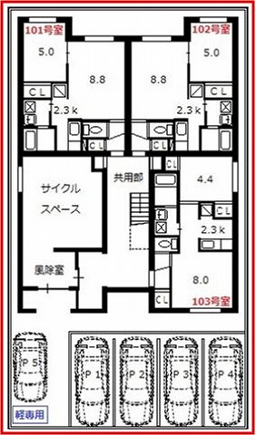 【間取構成】1LDK15世帯 駐車場5台
