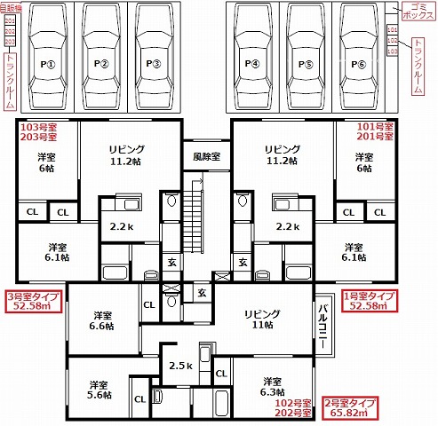 【間取構成】2LDK4世帯・3LDK2世帯 駐車場6台