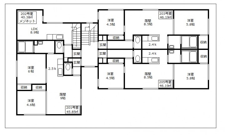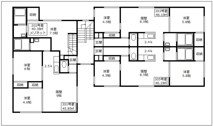 【間取構成】2LDK7世帯・1LDK1世帯
