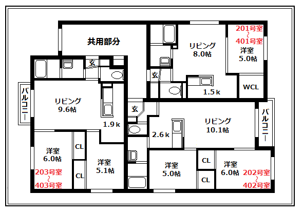 【間取構成】2LDK8世帯・1LDK3世帯