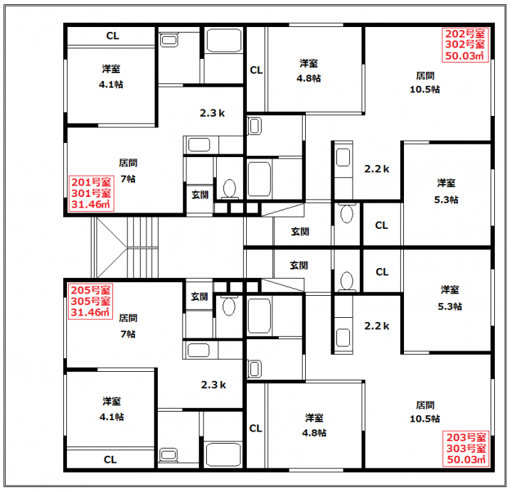 【間取構成】2LDK4世帯・1LDK5世帯