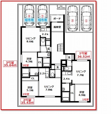 【間取構成】1LDK12世帯 駐車場4台