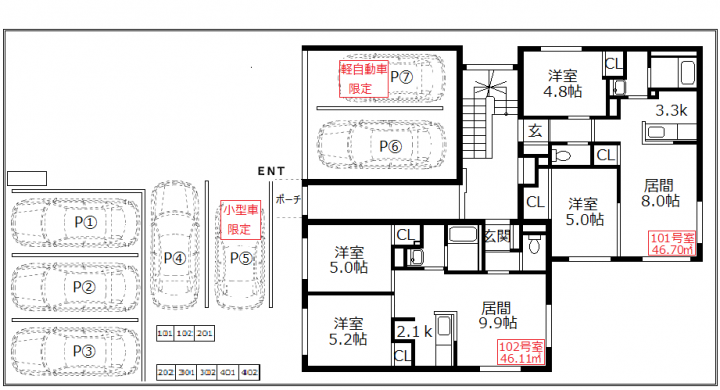 【間取構成】2LDK8世帯・1LDk3世帯